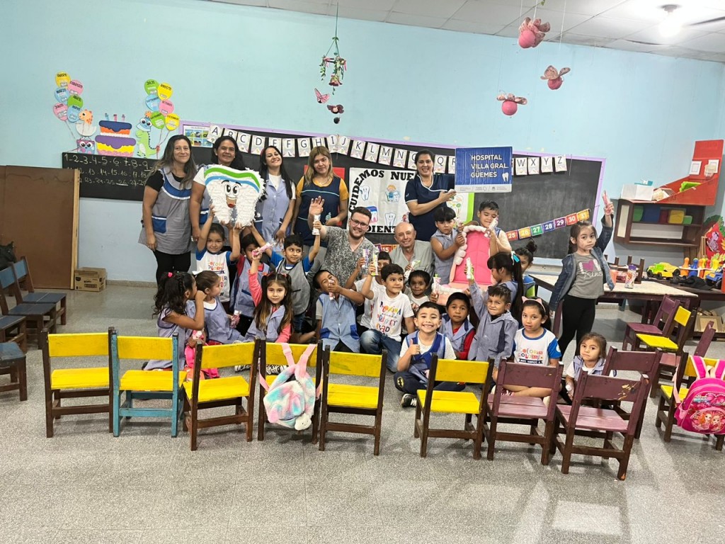 En ese marco, el servicio de odontología del Hospital de General Güemes, visitó esta semana al Jardín de Infantes (JIN) “Maestra Elena Polo” Nº 2, donde llevó adelante una charla-taller para enseñar a los jardineritos de la sala de cinco años, los hábitos que deben desarrollarse para conservar una boca y dientes sanos.