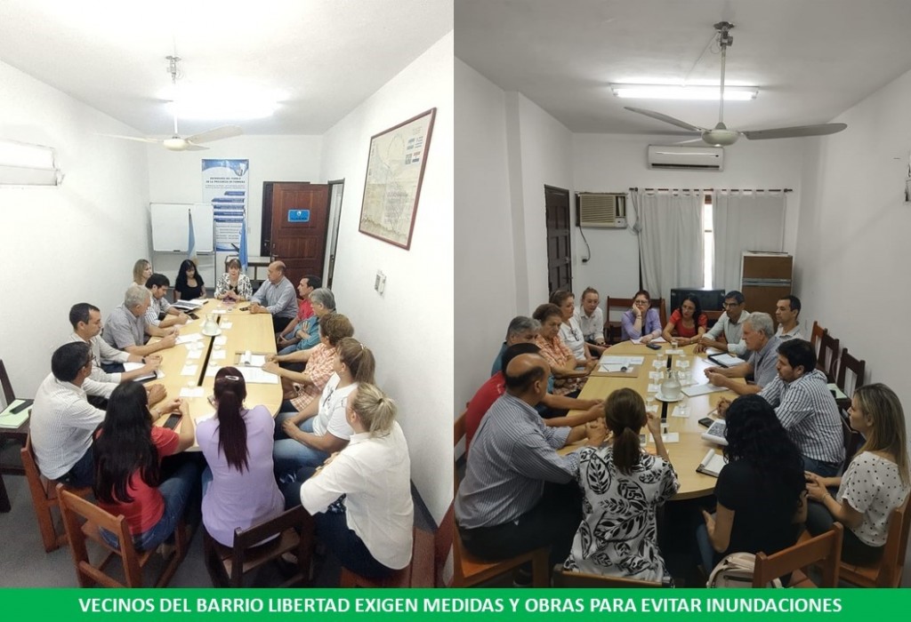 Vecinos del Barrio Libertad de nuestra ciudad capital, se reunieron en la Defensoría del Pueblo en la búsqueda de “información y alternativas de solución, por las inundaciones sufridas en dos fechas específicas, esto es el lunes 27 de noviembre y el jueves 7 de diciembre”, oportunidad donde el agua de lluvia caída en poco tiempo, hizo que ingresara a sus domicilios, anegándolos en aproximadamente 70 cm, colmando las calles y padeciendo el ingreso de líquidos por las rejillas de baños, cocinas, ante las saturaciones de los desagües cloacales. Los Representantes de los mismos, indicaron que las zonas más perjudicadas, van desde la Av. Kirchner en unos 300 metros hasta la calle General O’Higgins y desde la calle Sargento Ramón A. Costa hasta el Hospital de Alta Complejidad, señalando como áreas totalmente anegadas, el Pasaje Entre Ríos y la calle Arenales, debido al agua proveniente de los Barrios Colluccio, Illia, Malvinas y otros que culminan desembocando en las distintas calles del Barrio Libertad. Los mencionados fueron recibidos por la Defensora Adjunta, Dra. Sylvina Portillo y el Secretario Letrado Dr. José P. García, junto al Director y Secretaria de Obras Públicas Norberto Jofré y la Ing. Malena Gamarra de la Municipalidad de la Ciudad, además del Coordinador Ejecutivo de la UPCA Ing. Horacio R. Zambón, el Jefe del Departamento I de Conservación de Vialidad Provincial, Ing. Ricardo Jara Zaquelli y la Responsable del Seguimiento de Procesos de Aguas Lic. Claudia Torres por la Empresa Aguas de Formosa S.A.. El Ing. Jofré explicó que, en el Bº Libertad, se hallan dos conductos evacuadores: el primero va por la Av. 28 de Junio y descarga en la Av. Los Pioneros del barrio San Antonio; el segundo pasa a través de la Avenida Kirchner hacia la Av. Juan de Pueyrredón y descarga el agua en la Laguna Siam. Señaló que, todas estas viviendas se encuentran edificadas en una zona de estero, muy baja, por lo que se hace necesario una obra de ampliación de los desagües. Posteriormente, la Ing. Malena Gamarra, advirtió que “se detectaron numerosas conexiones pluviales que van a las cloacas produciendo la saturación del sistema”. Por su parte, el Ing. Zambón, revela que, en el evento climático ocurrido el 27 de noviembre, cayeron 237mm en periodos espaciados, por lo que el agua escurrió más aceleradamente que en el evento del 7 de diciembre, que fueron 202mm, pero cayendo en menor tiempo y de manera más intensa. La Ing. Gamarra, coincide en que se requiere ampliar la capacidad de desagüe de la estructura pluvial de la Ciudad, para lo cual se necesitan fondos de financiamiento, agregando que, el sector del parterre y la calzada corresponde al privado, por lo que los vecinos deben ponerse de acuerdo, para el financiamiento compartido, donde los mismos realizan la compra de los materiales, mientras que la Municipalidad aporta las maquinarias y mano de obra para realizar mejoras. Por su parte, el Ing. Zaquelli, expresó que existe un proyecto de obra, enviado a Recursos Hídricos de la Nación, para la creación de una estación de bombeo nueva, la más grande de toda la ciudad, que contempla el caudal de agua de las Avenidas 28 de Junio y Los Pioneros. Todas las partes coincidieron como soluciones posibles al anegamiento del Barrio Libertad en: 1) Limpieza y mantenimiento de los canales, conductos, bocas de tormenta existentes, para optimizar la capacidad de los mismos por parte de la Municipalidad de la Ciudad; 2) Inspección y relevamiento de los casos puntuales, a fin de detectar las obstrucciones en los conductos pluviales y cloacales, para lo cual los funcionarios de Aguas de Formosa y la Municipalidad,  toman los datos de los vecinos afectados; 3) Una vez efectuada las inspecciones, con los elementos relevados, el Municipio informará a los interesados sobre los materiales requeridos para las obras; 4) Se buscarán líneas de financiamiento para ampliar la infraestructura, en el proyecto general de todo el drenaje pluvial de la ciudad, para así evitar las inundaciones de las viviendas en toda esta zona.