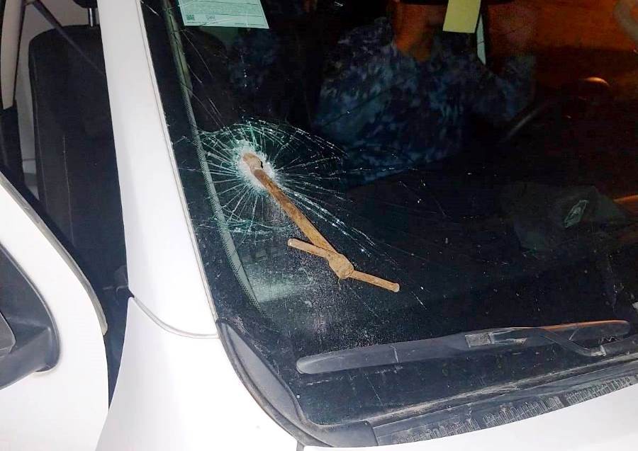 Lamentablemente, durante el forcejeo los inadaptados arrojaron un trozo de hierro al móvil del Destacamento Desplazamiento Rápido, provocando la rotura del parabrisas; en tanto el objeto quedó incrustado.