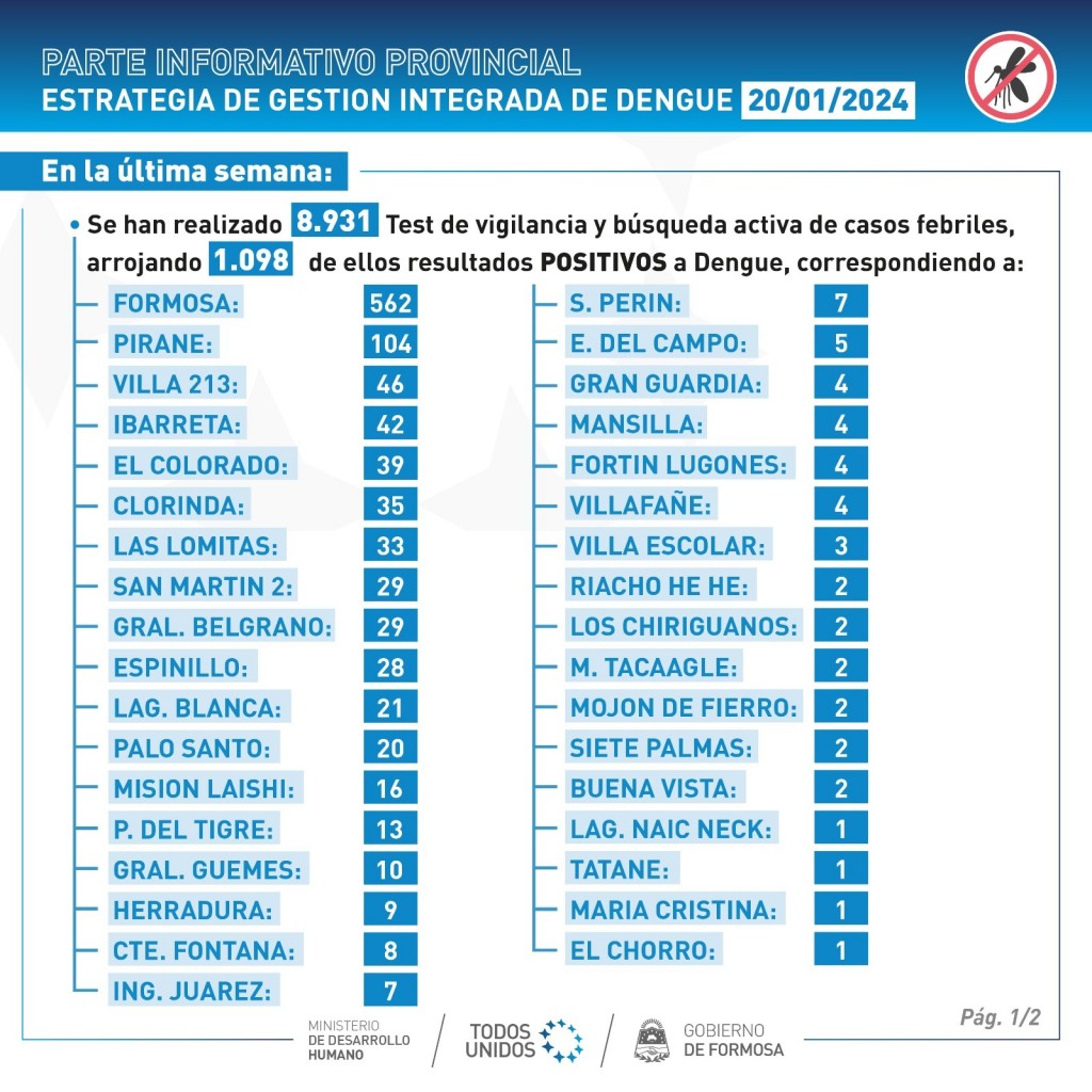 Dengue: 1.098 casos positivos la última semana en toda la provincia