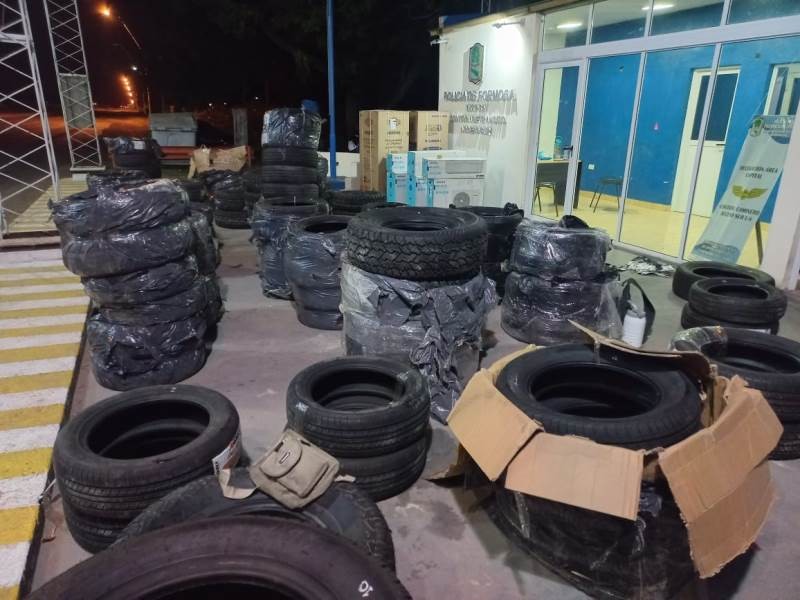 Tras la apertura de la carrocería, se constató que transportaba un total de 129 cubiertas de diferentes marcas y rodados de origen extranjero. También se encontró dos heladeras y tres acondicionadores de aire sin las documentaciones pertinentes.