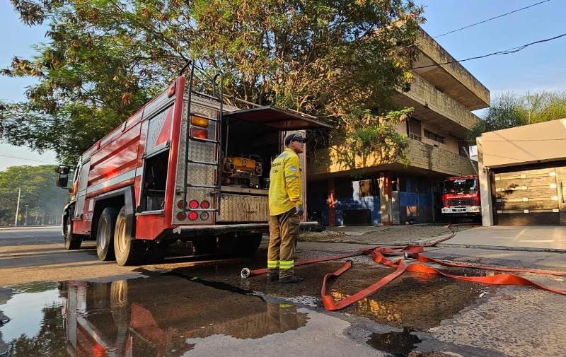 Dos dotaciones del Cuerpo de Bomberos y una cisterna trabajaron para controlar, circunscribir y extinguir un incendio que se produjo en un depósito con papeles en desuso. Posteriormente realizaron tareas de remoción y enfriamiento, para iniciar las pericias.