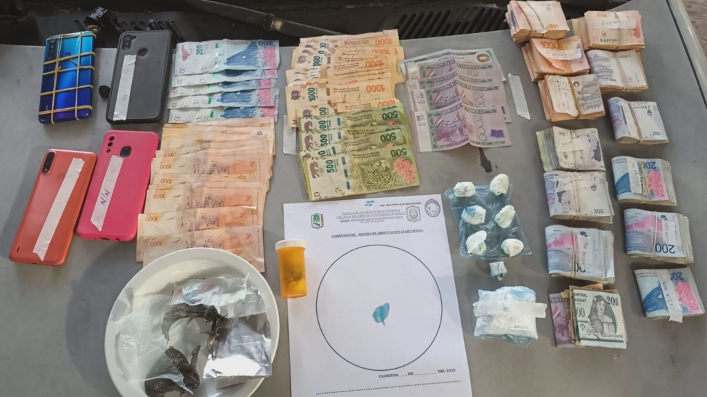 Efectivos de la Delegación Drogas Peligrosas Clorinda secuestraron varios gramos de cocaína, teléfonos celulares y dinero en un taller mecánico ubicado en el barrio San Miguel de la ciudad de Clorinda.