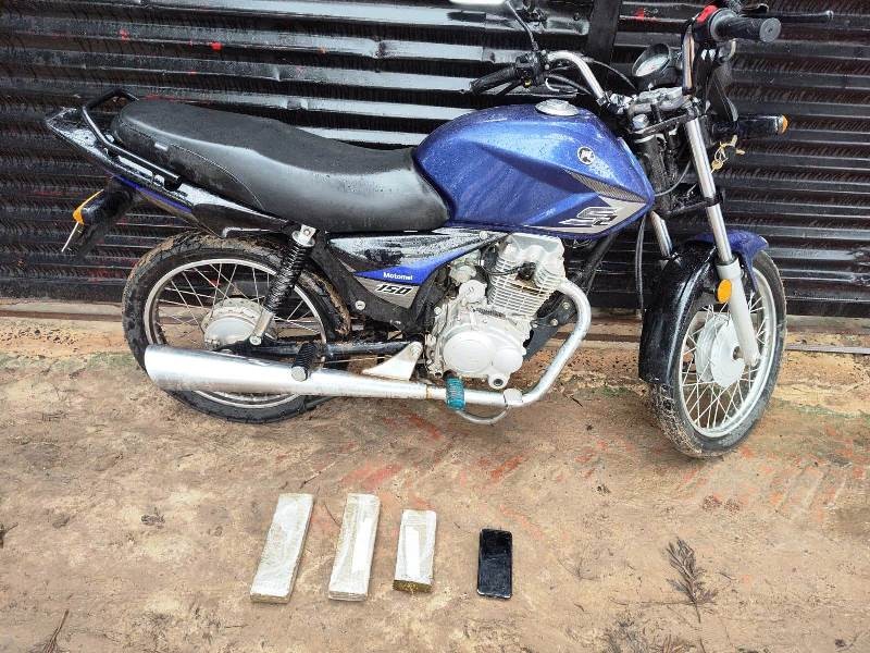 En presencia de testigos, les solicitaron que exhiban lo que tenían entre sus prendas de vestir, el menor exhibió tres ladrillos de marihuana. Asimismo, dentro del casco del conductor tenía un teléfono celular Samsung A04.