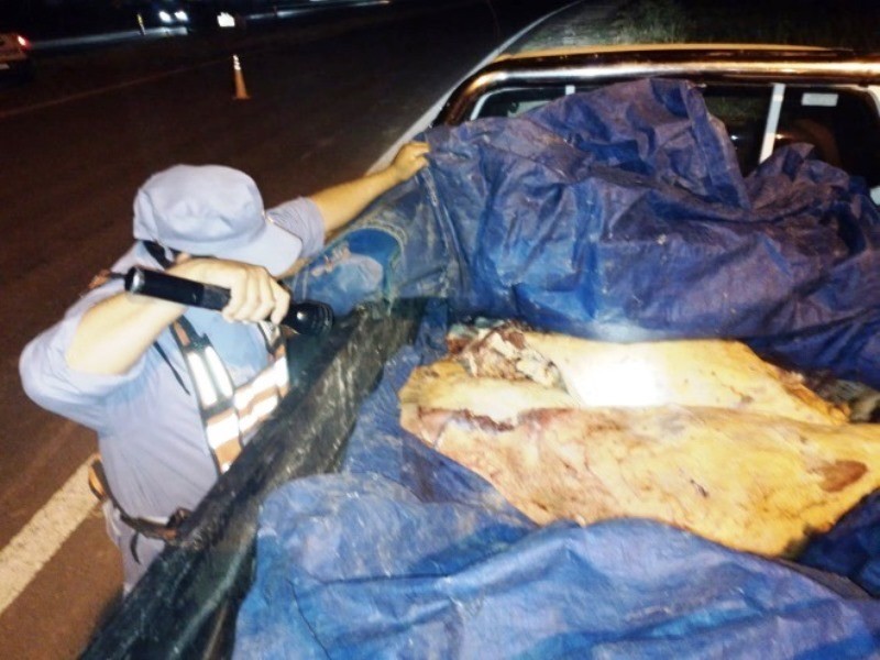Al observar la cajuela del rodado, se constató que llevaba una carpa azul que tapaba carne vacuna de reciente faena, sin contar con documentaciones que avalen el traslado y el ingreso al ejido municipal.