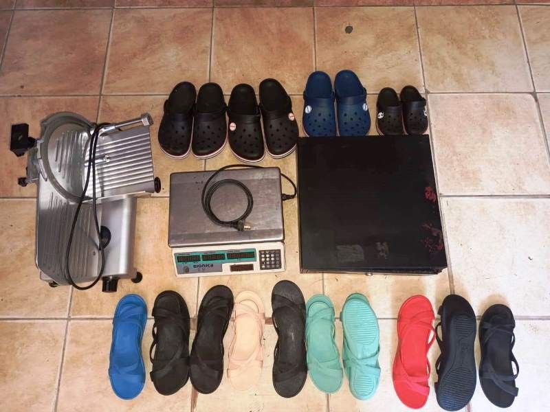 En ese lugar, los policías hallaron cinco pares de crocss, cuatro pares de ojotas, una balanza electrónica, una caja registradora y una máquina de cortar fiambre, que coinciden con los efectos robados, procediéndose al secuestro.