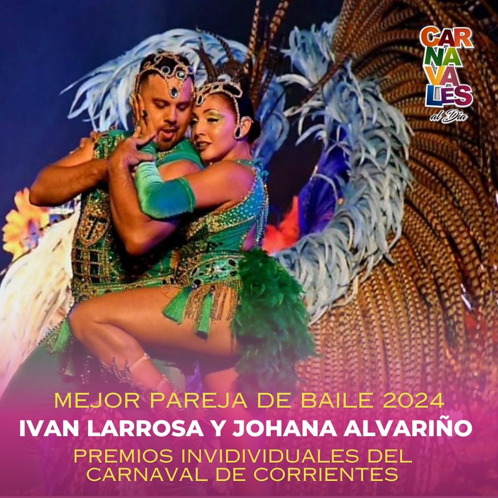 Destacados referentes locales de la danza fueron premiados recientemente como mejor pareja de baile de los Carnavales de Corrientes 2024.