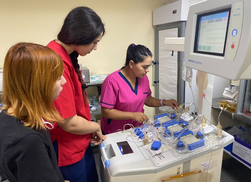 Se trató de cinco y diez sesiones de plasmaféresis en dos pacientes jóvenes con patologías complejas. Esta técnica es utilizada para el tratamiento de enfermedades autoinmunes, mediante la cual se separan los diferentes componentes de la sangre extraída de un paciente para poder reemplazar o eliminar algunas sustancias del organismo.