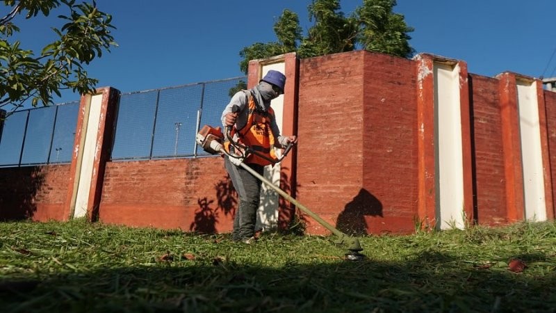 La municipalidad local, por medio de su Dirección de Parques y Espacios Verdes, prosigue con el mantenimiento, puesta en orden y embellecimiento de espacios públicos de la ciudad, a través de acciones de desmalezado, jardinería, higiene y mantenimiento de ejemplares arbóreos.