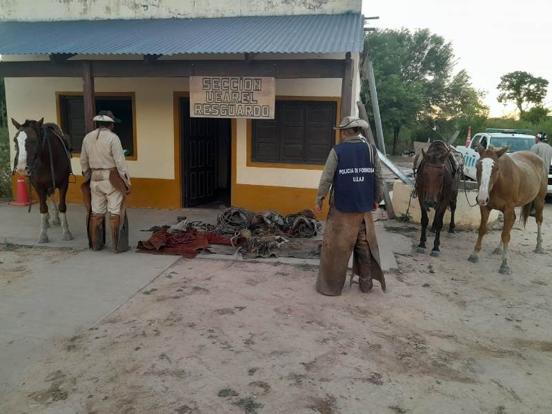 Efectivos de la Unidad Especial de Asuntos Rurales Sección El Resguardo, jurisdicción de Pirané, secuestraron un animal vacuno, ensillados, caballos, cuchillos y otros elementos en el marco de la investigación de un caso de abigeato; además de la identificación de los dos sospechosos.