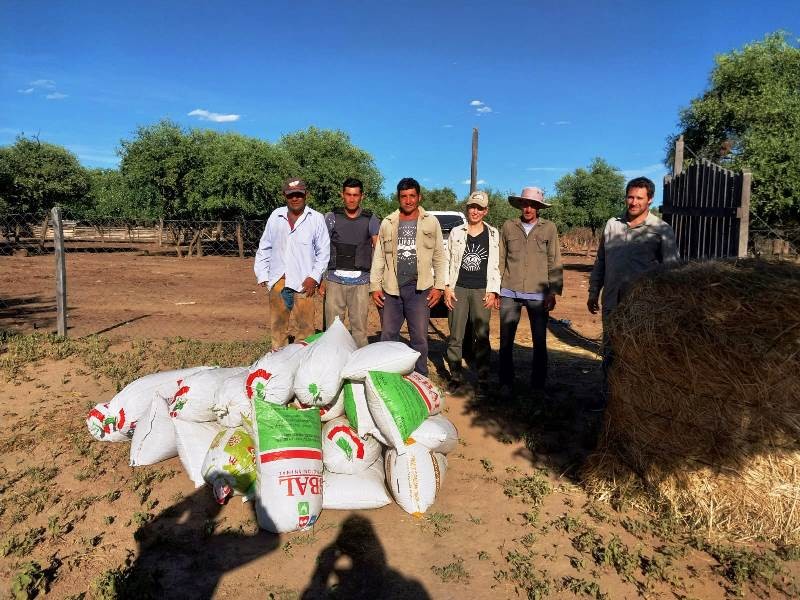 Se los abasteció con semillas de algodón (provenientes de la desmotadora de General Belgrano) y rollos de pastura del CEDEVA Laguna Yema para mitigar los efectos de la falta de alimento para los animales.