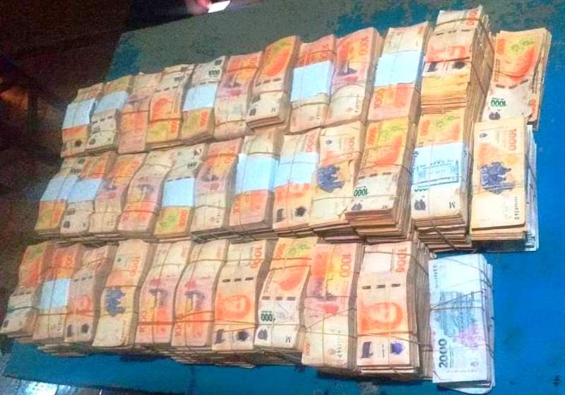 Con colaboración de testigos, se verificaron los bultos, encontrándose con bolsas de consorcio que contenían un monto total de 34.230.000 pesos, cuyo dinero no tenía ninguna documentación de respaldo.