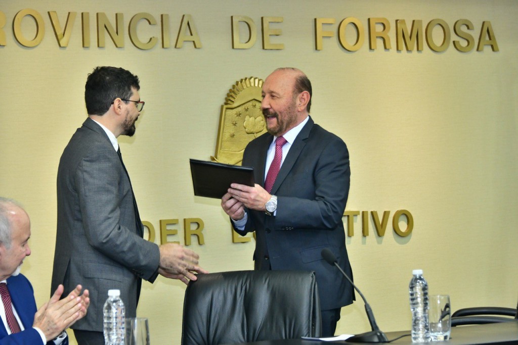 La ceremonia se celebró en la mañana de este lunes 22 en el Salón de Actos del sexto piso de la Casa de Gobierno, participando también el vicegobernador Eber Solís, el presidente del Superior Tribunal de Justicia, Guillermo Horacio Alucín, el jefe de Gabinete de Ministros, Antonio Ferreira; legisladores nacionales y provinciales, al igual que ministros y secretarios del Poder Ejecutivo, entre otras autoridades e invitados especiales.