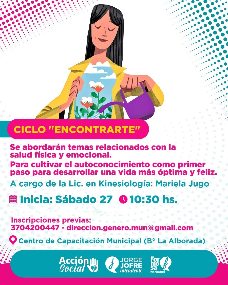Luego de haber sido postergada la jornada inicial del encuentro, la misma finalmente verá la luz este sábado 27, propuesta por la Secretaría de Acción Social de la comuna capitalina, destinada a la ciudadanía formoseña, apuntando a una búsqueda personal de la mejora en los diferentes estados anímicos.