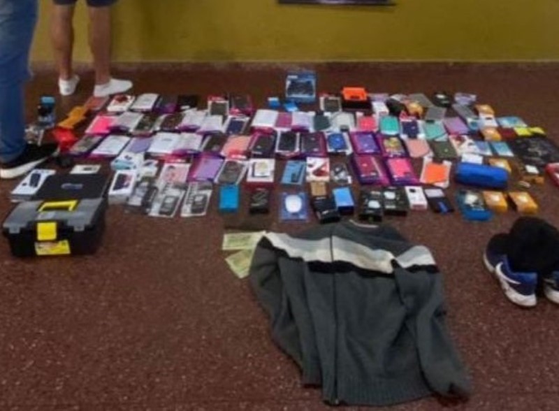 Se recuperó la totalidad de los bienes, entre ellos cargadores para celulares, fundas, protectores, varios equipos informáticos, caja de herramienta, entre otros