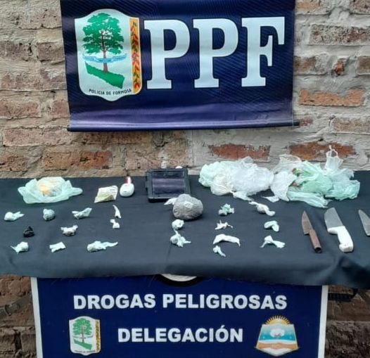 Durante un allanamiento en una vivienda del barrio Santa Rita de Ingeniero Juárez, la Policía detuvo a un dealer, retuvo a un adolescente, secuestró 23 envoltorios de marihuana listos para la comercialización y cuchillos, entre otros elementos.