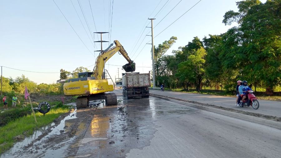 Operarios comunales al mando de dispositivos, procedieron con trabajos de cuneteo, limpieza y recolección de residuos no convencionales en el B° La Perla, a la vez que continuó el cuneteo con carga directa y colocación de tubos de hormigón sobre la Av. Los Pioneros, en el B° San Antonio.