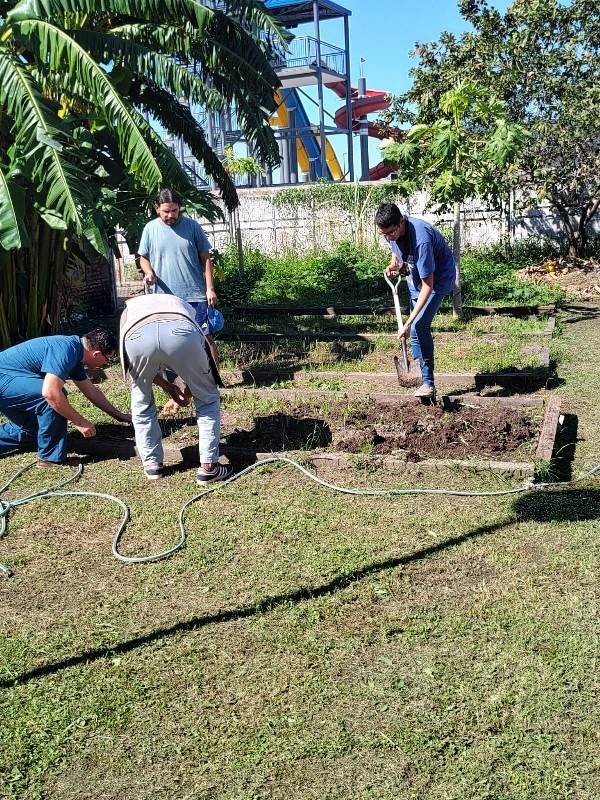 Entre esas tareas planificadas, continúan desarrollando el taller de huerta, un espacio de aprendizaje para el cultivo y la cosecha de verduras y hortalizas, que posteriormente son utilizados para hacer diferentes preparaciones de comidas en el taller de cocina al que también asisten periódicamente.