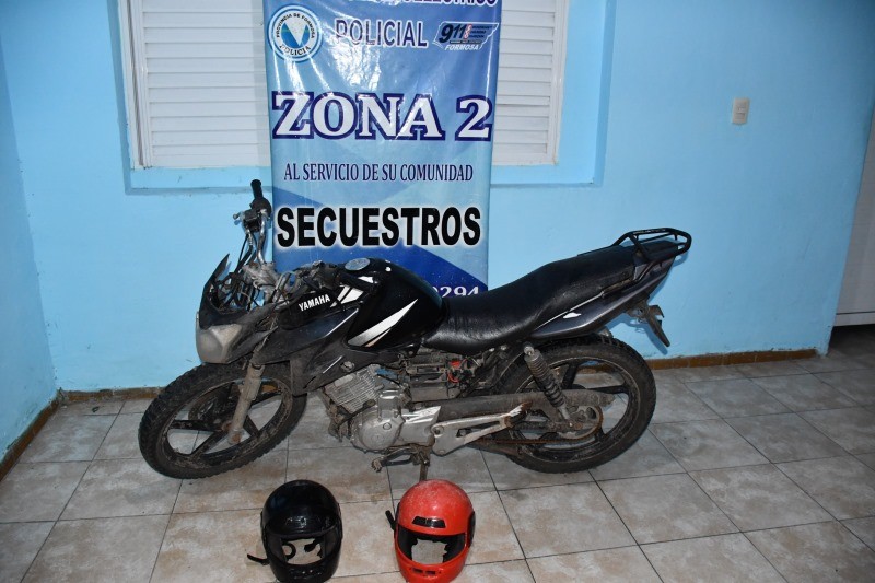 Se procedió al secuestro una motocicleta Yamaha YBR, dos cascos protectores y el envoltorio de marihuana.
