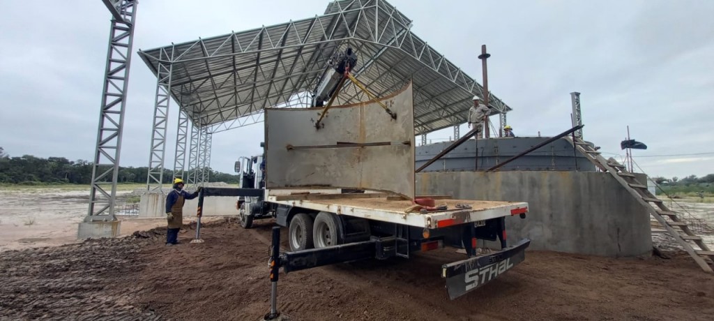 Las diferentes piezas que componen la infraestructura industrial son transportadas hasta la ciudad de Formosa por camiones provenientes de Brasil para su descarga.