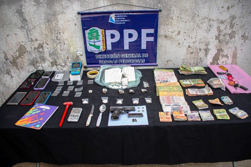 Como resultado secuestraron 997 gramos de cocaína, siete aparatos de telefonía, dinero en pesos y guaraníes, balanza, una pistola calibre 22, cuaderno de anotaciones, elementos de almacenamiento y corte, entre otros elementos utilizados para la actividad ilícita. Además, se detuvo a una pareja de 30 y 19 años respectivamente.
