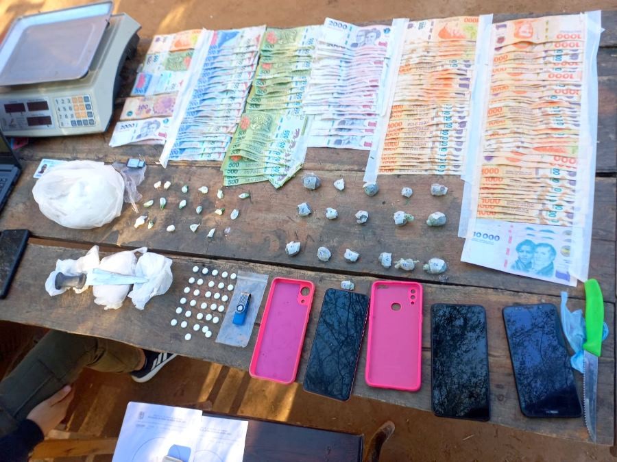 Allí se secuestraron 17 envoltorios de cocaína, 14 de marihuana, una importante suma de dinero, tres teléfonos celulares, elementos de corte y estiramiento, una balanza, entre otros elementos utilizados para la actividad ilícita; más la detención de las dos mujeres.