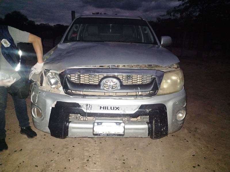 Al finalizar, se trasladaron hasta el campo donde se encontraba la camioneta, que tenía daños en la parte frontal del lado derecho y los restos secuestrados coincidían.