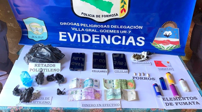 Los allanamientos dejaron como resultado el secuestro de un envoltorio con varios gramos de cocaína aptos para la confección de 18 dosis umbrales, cigarrillo de fabricación casera parcialmente consumido, dinero, tres teléfonos celulares, semillas de cannabis y elementos de almacenamiento, entre otros bienes de interés a la causa.