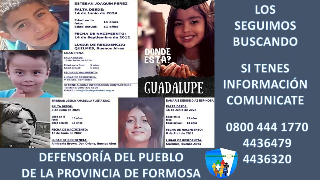 En Argentina, desde el 2019 se creó el -Programa Alerta Sofía-, impulsado por el Ministerio de Seguridad de la Nación. Es un sistema de alerta de emergencia para localizar a niños. Se impulsó el Programa Alerta Sofía para la búsqueda de Loan Danilo Peña, de 5 años de edad, quien desapareció el jueves pasado en el Paraje Algarrobal, de la localidad 9 de Julio, en la provincia de Corrientes. Según relataron medios locales, Loan fue a recolectar frutas junto a otros tres menores y tres adultos. Quien le dio permiso fue su padre, ya que los mayores a cargo eran conocidos de la familia. Por ello, el Defensor del Pueblo de la Provincia de Formosa, Dr. José Leonardo Gialluca, puso a disposición los números telefónicos del Organismo 0800 444 1770 – 4436320 – 4436379 – 370 4 365924 – 370 5 015744 – 370 4 698346 y los correos electrónicos Institucionales [email protected] – [email protected] para contactarse en caso de tener información útil. Entre todos colaboremos para dar con el paradero de niñas y niños que se encuentran desaparecidos en nuestro país.