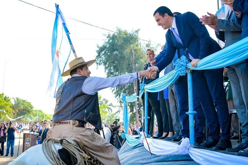El Vicegobernador asistió al acto central y desfile, que contó con una numerosa participación de todas las instituciones que conforman esta pujante localidad.