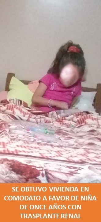 Se obtuvo vivienda en comodato a favor de niña de once años con trasplante renal