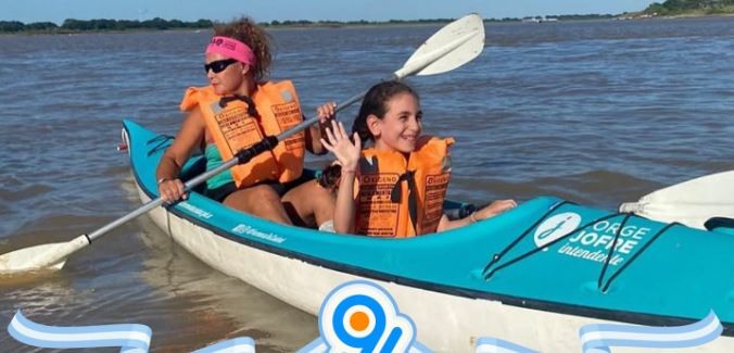 Puede ser una imagen de 2 personas, kayak y texto