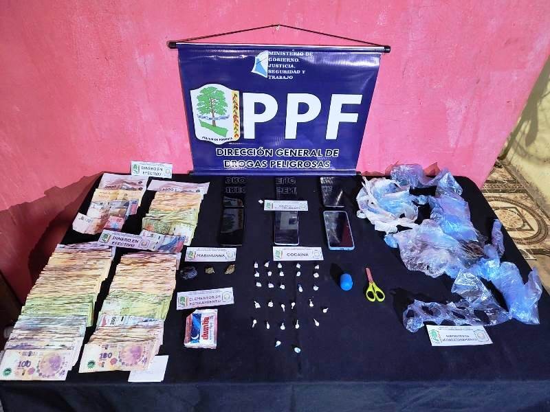 También secuestraron 28 envoltorios de cocaína, varios gramos de marihuana, seis teléfonos celulares, elementos de acondicionamiento y corte, más una importante suma de dinero.