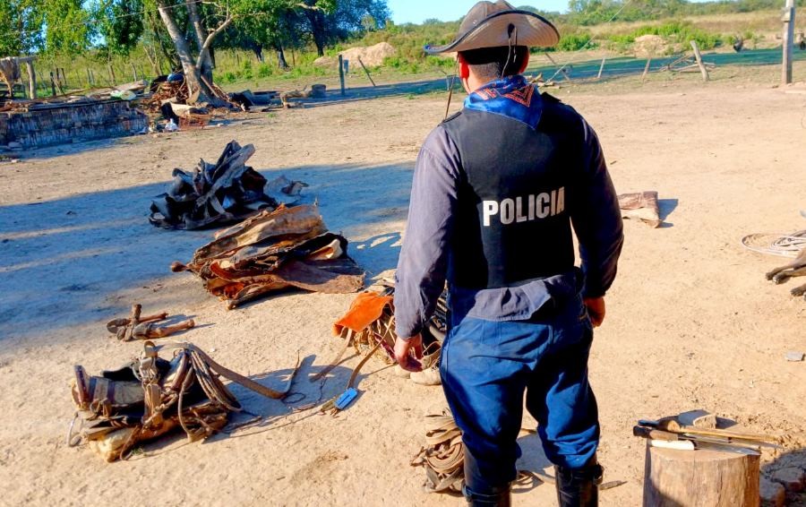 Se secuestraron armas blancas, ensillados, caballos, entre otros elementos que resultan de interés a una causa judicial por el delito de “Abigeato Calificado y Asociación Ilícita”.