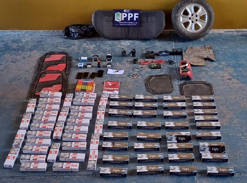 Efectivos de la fuerza provincial secuestraron una camioneta Renault Duster que fue abandonada, luego de evadir un control policial sobre la Ruta Provincial N° 9, lo que derivó en los allanamientos de dos viviendas en El Colorado, la detención de un hombre y una mujer y la incautación de más de 60 brezas de cigarrillos.
