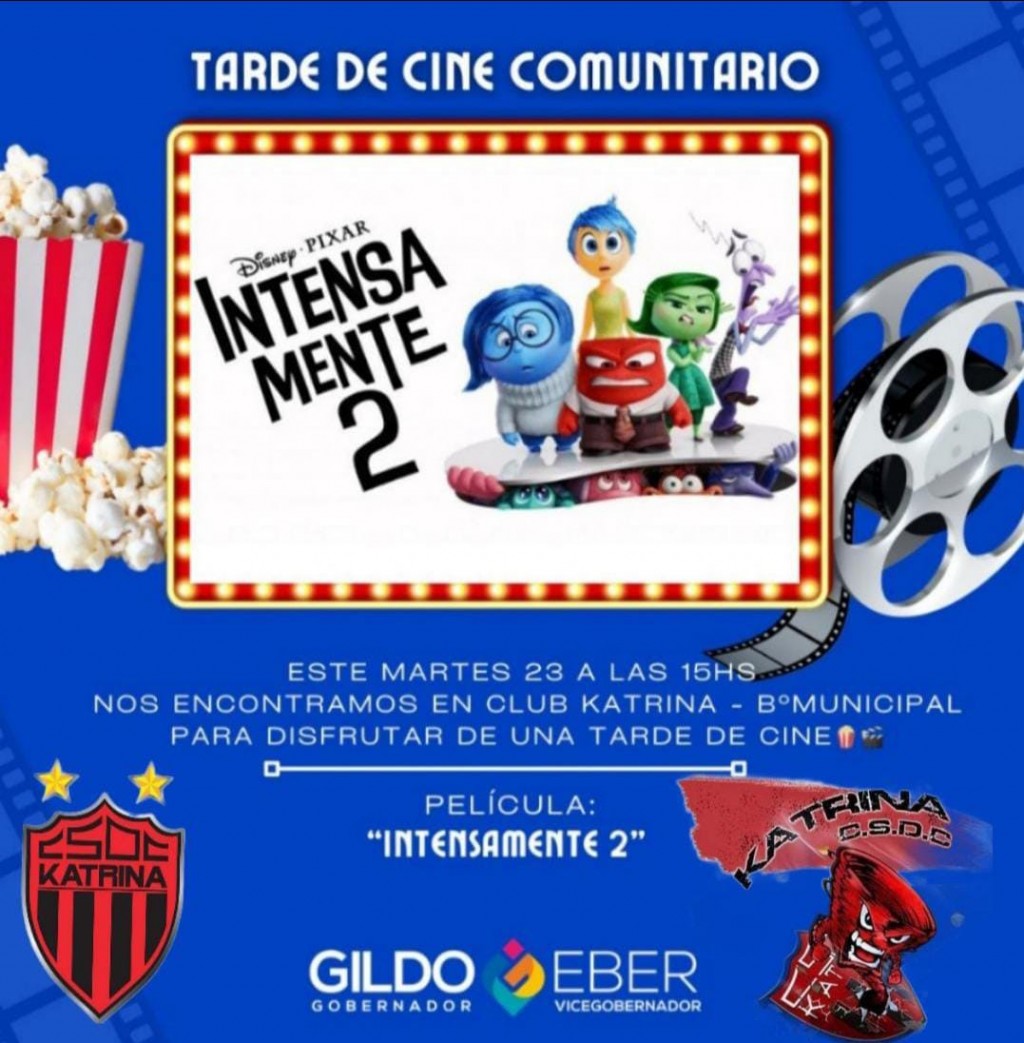 La película que se proyectará será Intensamente 2, a partir 15 horas, y a quienes asistan también se les dará un refrigerio. “Es totalmente libre y gratuito”, remarcó sobre este espectáculo de cine en el barrio Municipal.