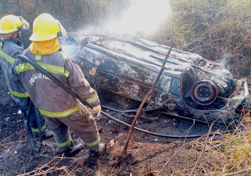 Alrededor de las 15:00 horas de este viernes, efectivos de la Subcomisaría Mojón de Fierro tomaron conocimiento de un vuelco e incendio de vehículo en inmediaciones al santuario del Gauchito Gil.