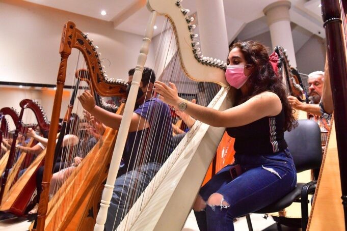 Aclaró, que para asistir al taller “no es necesario tener conocimiento previo ni instrumento propio”, e indicó que esto es posible porque cuentan “con 13 arpas propias”.