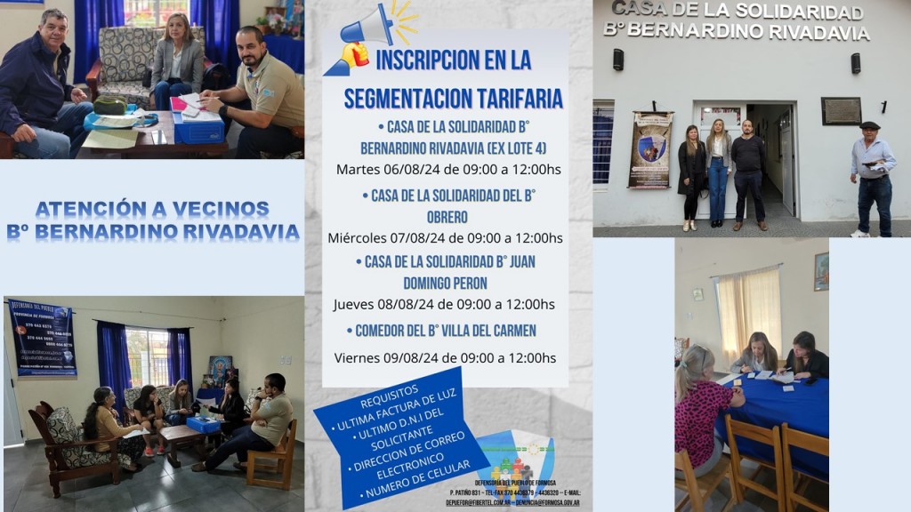 Mediante la Disposición Nº 1/24 de la Subsecretaria de Transición y Planeamiento Energético de Nación, dependiente del Ministerio de Economía, suscripta por Mariela Beljansky, se estableció en el Art. 1 – Prorrogar hasta el 4 de septiembre del 2024, los plazos establecidos en el Art. 8 de la Resolución Nº 90/24 y en el Art. 6 de la Resolución Nº 91/24, ambas de la Secretaria de Energía, para que los usuarios beneficiarios de tarifa social y/u otros programas provinciales destinados a beneficiar a aquellos usuarios con menor capacidad para afrontar el pago de servicio público de electricidad y que hubieren resultado categorizados como “Nivel 2 – Ingresos Bajos” en virtud de la Resolución Nº 631 de fecha 30 de agosto del 2022 de la Secretaria de Energía y/o de la Disposición Nº 3 de fecha 1 de septiembre del 2022 de la Ex Subsecretaria de Planeamiento Energético, procedan a inscribirse en el REGISTRO DE ACCESO A LOS SUBSIDIOS A LA ENERGÍA (RASE) en forma individual. El Ombudsman Provincial, Dr. José Leonardo Gialluca, resaltó que, con esta publicación en el Boletín Oficial, nos aseguramos un tiempo más para que los usuarios residenciales puedan segmentarse y de esta manera, evitar perder los subsidios y pasar a pagar una tarifa plena. El Funcionario Provincial, recordó que, esta Disposición Nº 1/24, “no alcanza a los usuarios beneficiarios de tarifas sociales o de otros programas nacionales o provinciales, de fecha posterior a la publicación de la misma”. Añadió que, en el día de la fecha, profesionales del Organismo de la Constitución, estuvieron inscribiendo en el RASE a vecinos del Barrio Bernardino Rivadavia Ex Lote 4 en la Sede de la Casa de la Solidaridad y que el miércoles 7 de 9:00 a 12:00 horas, se hará lo mismo en el Barrio Obrero, el jueves 8 en el Barrio Juan Domingo Perón, siempre en las Casas de la Solidaridad, luego de gestiones coordinadas con Hugo Arrúa -Administrador del Instituto de Pensiones Sociales de la provincia de Formosa- (IPS), para concluir el viernes 9 en el Comedor del Barrio Villa del Carmen, por lo que, se invitó a concurrir a todos los usuarios de Refsa, los que deberán llevar la última factura de energía eléctrica, último DNI del solicitante, dirección de correo electrónico y nro. de celular. Estas actividades continuarán la semana entrante, dándose a conocer con la antelación necesaria, los Barrios donde estarán los profesionales de la Defensoría del Pueblo y el IPS.