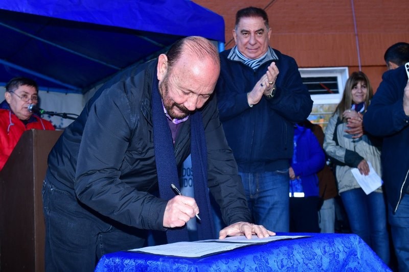 Uno de los momentos importantes que se vivió fue cuando la Dirección Provincial de Vialidad (DPV), a través de su titular, Javier Caffa, y el intendente capitalino Jofré formalizaron el acta de llamado a licitación para la construcción y ampliación de la red de desagües fluviales para la repavimentación de la calle Martín Rodríguez del barrio Villa del Rosario.