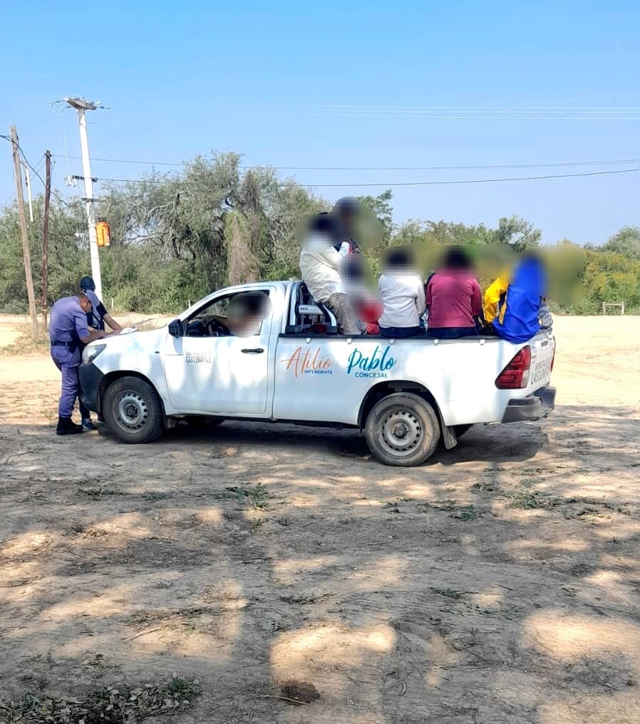 Efectivos de la Subcomisaría Fortín Lugones, secuestraron una Toyota Hilux durante un control de rutina, conducido por un hombre que transportaba a 15 personas en la caja del rodado, entre ellos siete menores, poniendo en peligro sus vidas y la seguridad del tránsito.