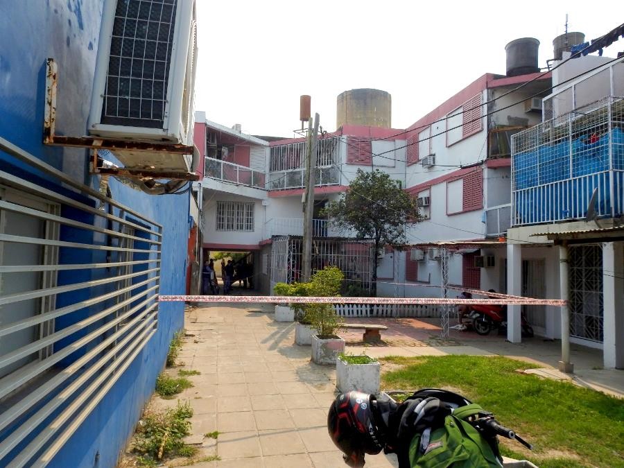 En el lugar, el personal de Policía Científica documentó la existencia de gotas de sangre que se extendían por pasillos y torres lindantes. Luego se secuestró un cuchillo carnicero que tenía manchas de sangre, en el sector de la escalera.
