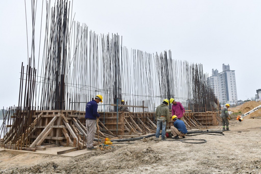 En una etapa previa, se construyó el sistema de fundación, que consistió en perforar y hormigonar 132 pilotes de gran diámetro, de más de 24 metros de profundidad. Sobre eso, se hicieron cabezales de unión, y ahora se ejecuta el hormigonado del muro, que tendrá seis metros de altura, que permitirá defender la costa y recuperar este sector del río.