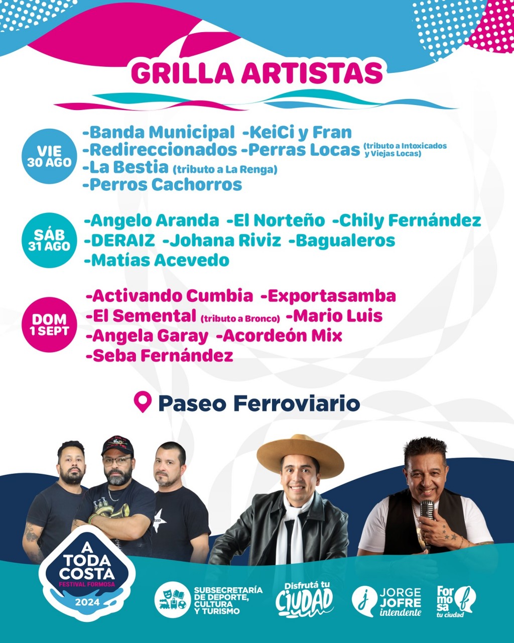 Grilla de artistas de nuestro festival #ATodaCosta