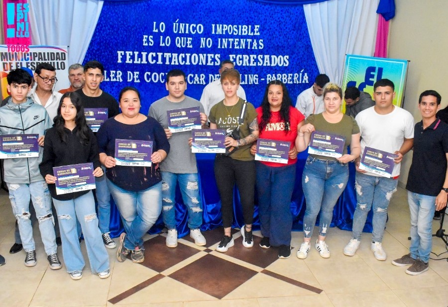 Unos 16 jóvenes espinillenses y de la zona finalizaron los cursos de barbería básica y car detalling, mientras que una decena de niños hicieron lo propio en el curso de cocina infantil en la Escuela de Oficios que funciona en esta localidad, con el acompañamiento de la Municipalidad.