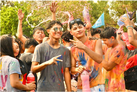 Este evento, que fue organizado por las agrupaciones de juveniles “Fuerza Joven”, “Grito de Corazón” y distintas áreas de la Municipalidad, se denominó “Guerra de colores”, y consistió en una “guerra” de pinturas y agua, sumado a diversas actividades recreativas que generó la euforia y algarabía de la multitud.   Este gran encuentro juvenil contó con la actuación en vivo de Activando Cumbia, la musicalización de los Dj’s Seba Ruiz, Facu García y Sergio Machuca, y la animación de Sergio Gallardo y Pepe del Turco.    Además hubo importantes premios para los estudiantes, puntos de hidratación, refrigerio de frutas frescas y también fue elegida la reina de la fiesta “Guerra de Colores”, Victoria Illanes.