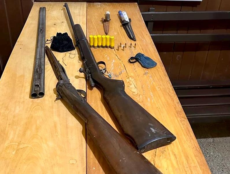 Efectivos de la fuerza provincial detuvieron a dos hombres, secuestraron una escopeta calibre 20, un rifle calibre 22, varios cartuchos, dos puñales y una chaira.