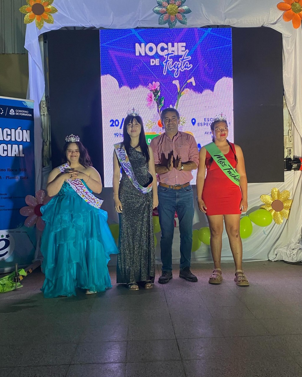 Por razones climáticas, la fiesta tuvo lugar en la Escuela Especial N°1 y fue todo un éxito, ya que pudo verse a los estudiantes desfilar por la pasarela con soltura y gracia, llevándose el aplauso de todos los presentes, autoridades y familiares.