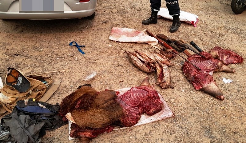 Efectivos de la fuerza provincial, detectaron que un hombre de 55 años que se desplazaba en un automóvil Fiat Siena y transportaba animales silvestres faenados, una escopeta, un aire comprimido y elementos de faenamiento, que fueron secuestrados.