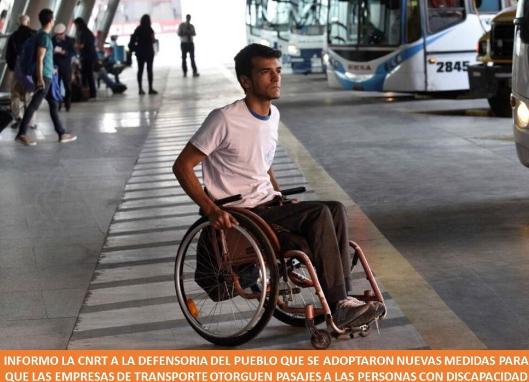 Informó la CNRT a la Defensoría que se adoptaron medidas para que las empresas otorguen pasajes a personas con discapacidad